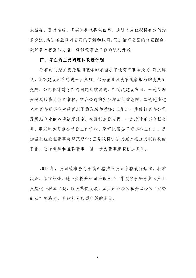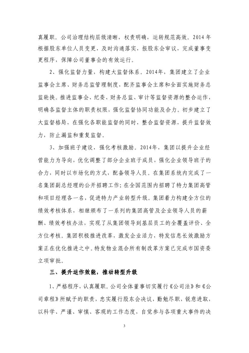 特發(fā)集團2014年度董事會工作報告