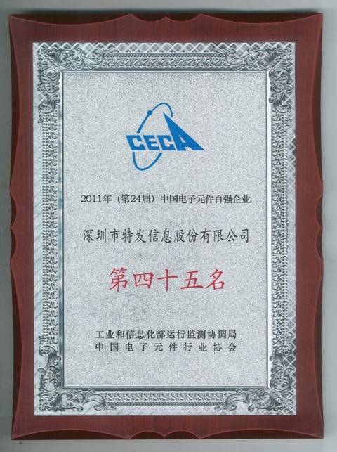 特發(fā)信息連續(xù)四年獲“中國電子元件百強企業(yè)”稱號