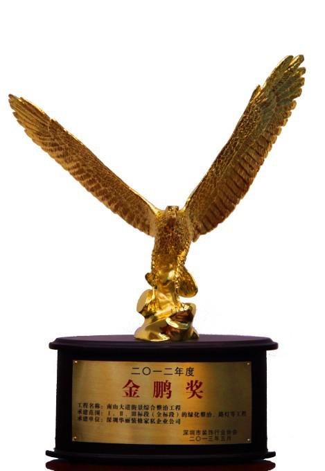 集團參股企業(yè)華麗裝修家私企業(yè)公司承建的“南山大道街景綜合整治工程Ⅲ標段”喜獲2012年度深圳裝飾工程金鵬獎(公裝類)。2013年8月,深圳市裝飾行業(yè)協(xié)會授予華麗公司“深圳市裝飾工程金鵬獎”獎杯和證書,這是華麗公司繼2002年以來第五次榮獲 “深圳市裝飾工程金鵬獎”。該獎是我市優(yōu)質(zhì)裝飾工程獎,也是我市裝飾工程市級質(zhì)量獎,根據(jù)《深圳市裝飾工程金鵬獎評選辦法》有關(guān)規(guī)定,深圳市裝飾行業(yè)協(xié)會秘書處組織專家對2012年度企業(yè)申報“金鵬獎”資料及工程現(xiàn)場認真檢查評比,經(jīng)“金鵬獎”評委會評審?fù)ㄟ^,華麗公司榮獲此獎。