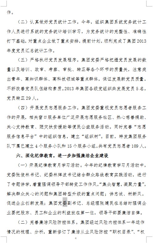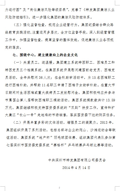 2013年特發(fā)集團黨委工作報告